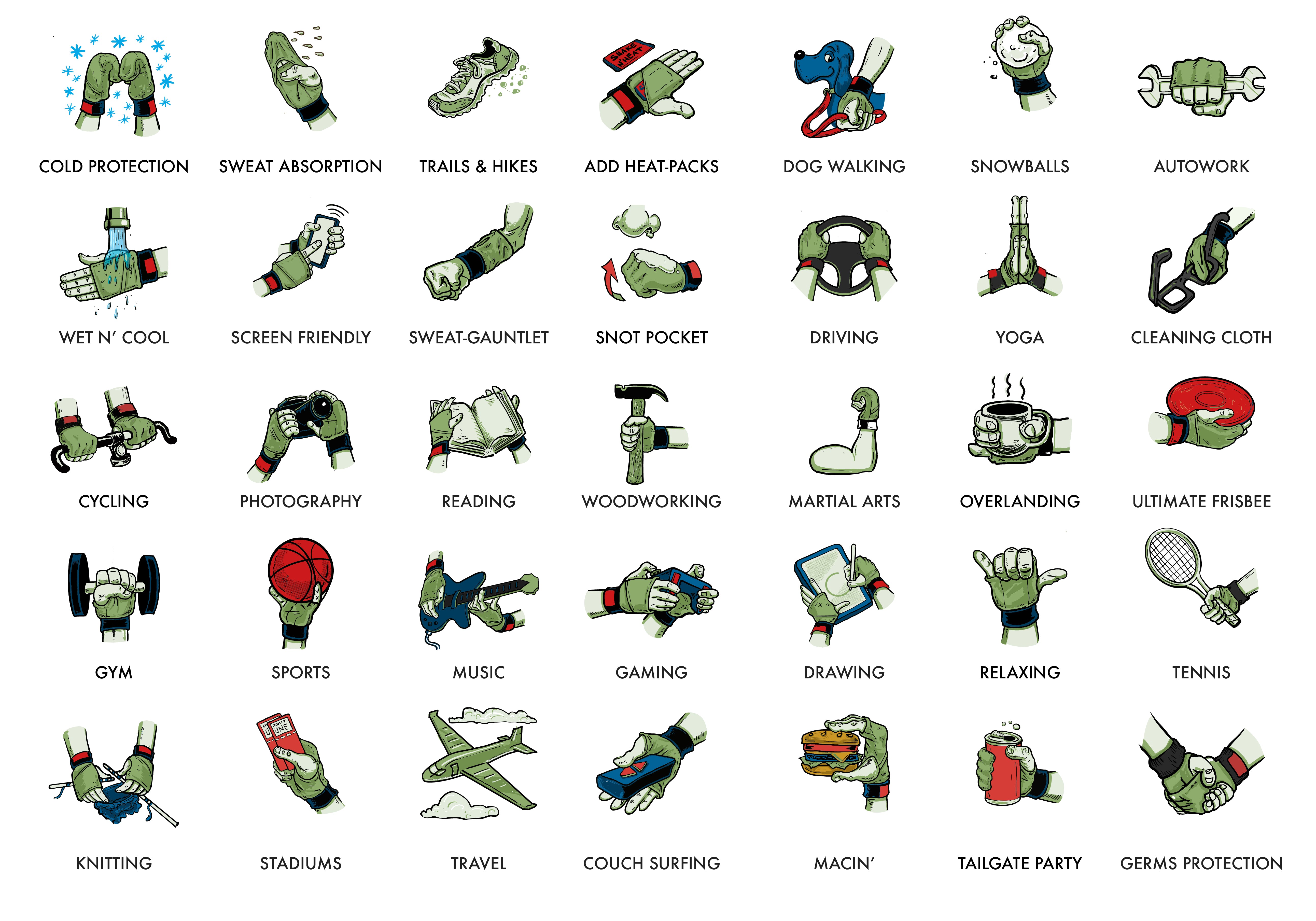 Performace handwear that converts from glove to mitten to sweatbands without missing a step.