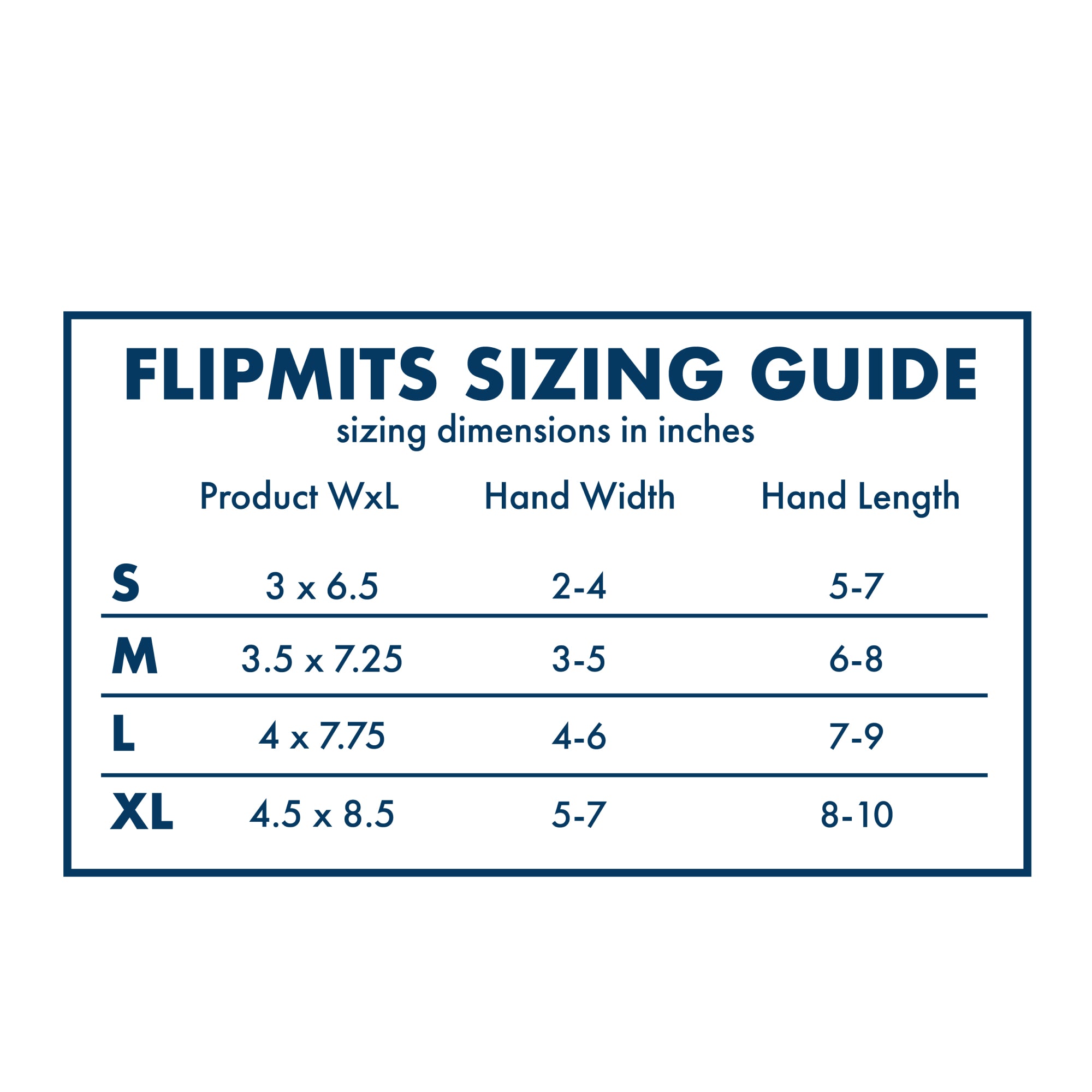 When choosing your FLIPMITS size, personal preferences are important. Do you like them snug or loose, longer or shorter? Generally speaking, for size selection length is the more important measurement to consider.